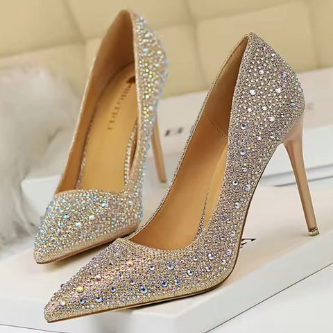 Nydelige hvite, klassiske selskapssko/brudesko med strasspynt.