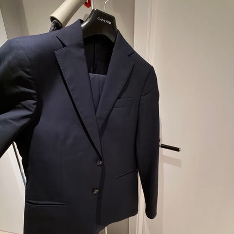 Trenger du ny dress til jobb, julebord eller livets store merkedager? Laget av klassisk, elegant og tynn super 120-talls ull fra veveriet Vitale Barberis Canonico, er denne dressen det perfekte valget for enhver anledning. Blazeren er helfôret, har en myk konstruert skulder og stilige klafflommer. Buksen har en slank, men likevel ikke tett passform og normal midjehøyde.