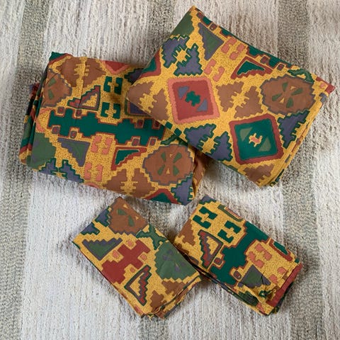 2 nye ubrukte sett med gule dynetrekk og putetrekk med exclusive trykk designet for Bokklubben Nye Bøker. 130*200 cm. Kun vasket. Røyk- og dyrefritt. Pris kr. 300,-/sett. Sum 2 sett kr.600,-. Pris er satt. Tar vipps.