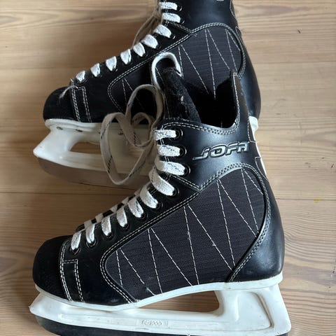 Vintage lengdeløpskøyrer i ekte sort skinn fra Ving. Str. 39. Made in Norway. Kjøpt 1970’s. Skøytene er i bruks stand med bra stål. Litt skokrem gjør susen. Selger kr.699-.