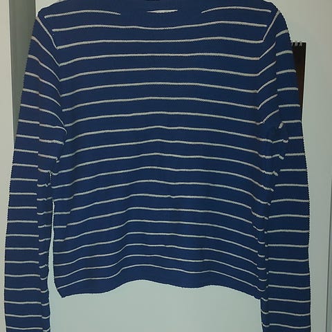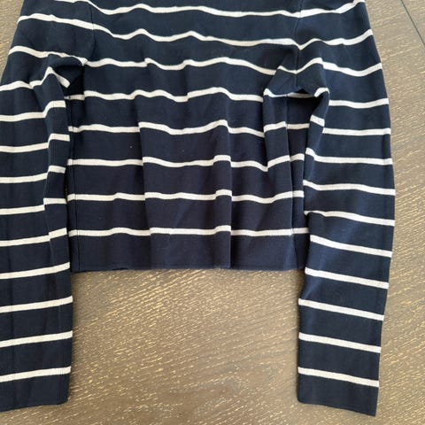 Kabelstrikket stripete genser (XS) hvit/mørkeblå