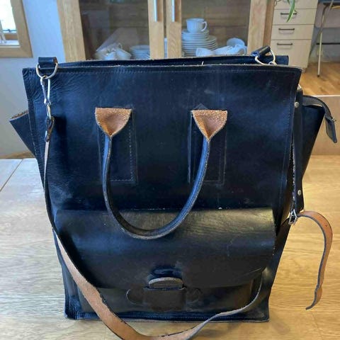 Denne er i god stand med bruksmerker se bilder, fantastisk patina, skal den brukes som ransel må feste til en dkulder reim repareres.
