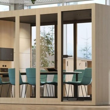 5 stk Lydisolert stillerom / møterom i glass, melamin og stoff fra Narbutas, mod