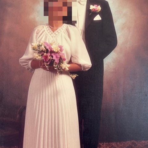 Don’t mind the man, it’s the white dress that is looking for a new owner.
