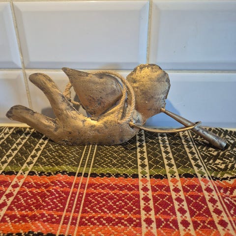 Søt pynteengel med lys i vingene. Batteridrevet. Ca 13 cm høy. Kan henges opp eller stå til pynt. Kan sendes, kjøper betaler porto.🎄❄️🎅