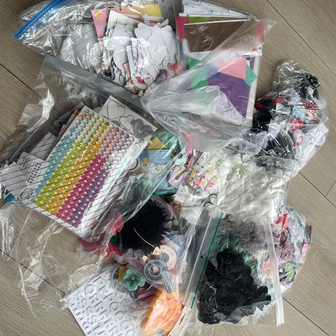 35 poser med massevis av forskjellige applikasjoner/rosetter/tassels/ponponer osv.