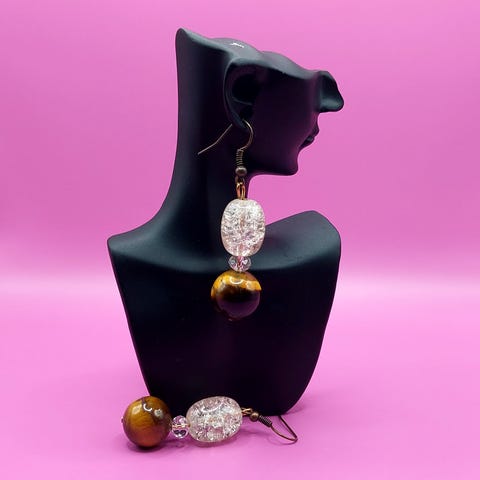 En "Rosa drøm", kjede og øredobber av egenproduserte glassperler, med tillegg av Japanske kulturperler og sølv.