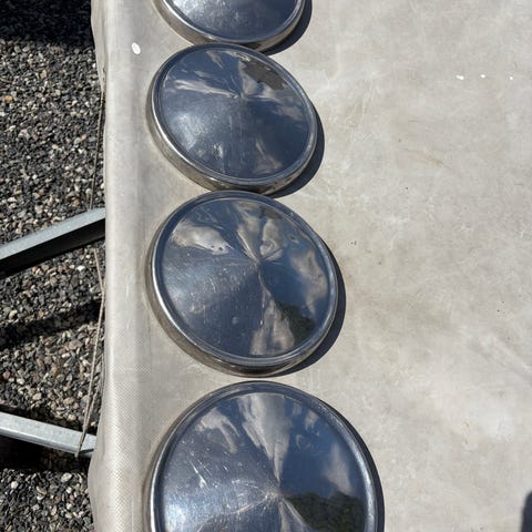 Diverse hjulkapsler selges for 100 kroner pr stk.