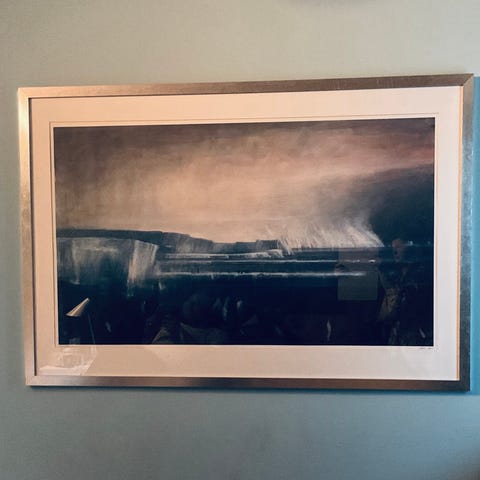 Kjøpt hos Fineart, rammet inn på rammeverksted. Fremdeles pakket inn i plast, da det aldri har blitt hengt opp på vegg. Hentes i Asker.