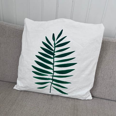 Grå avlang pute med motivet «enjoy» fra Åhléns. Putetrekk og innerpute selges samlet. 40x60cm. Pent brukt!