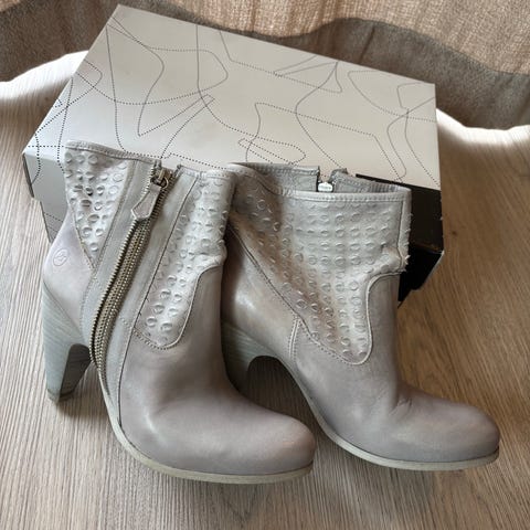 Beige ankelstøvletter med 10 cm. høy hæl.