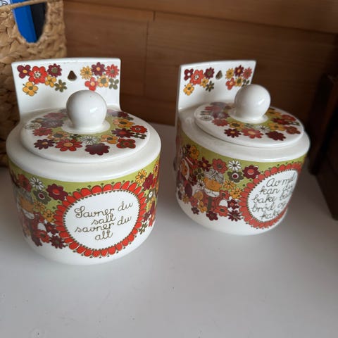 Koselig krukke, pen, ingen slitasje. Høyde 9,5 cm., diam., ca 12 cm