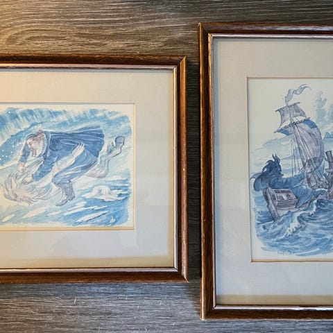 2 flotte maleri av Johnny Andvik selges samlet, kr 34000+ 5 % kunstneravgift, kr 1700( tilsammen kr 35700)Hvert bilde med ramme måler 79x82 cm .Selve maleriet måler 56x59cm. . Må hentes i Porsgrunn.