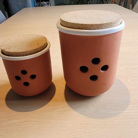 Unik terrakotta beholder til løk/hvitløk selges