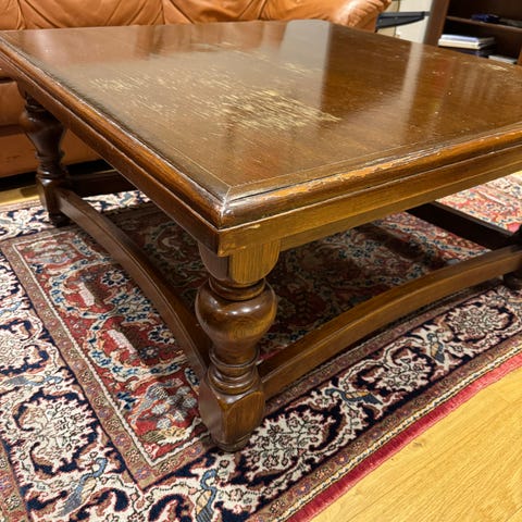salongbord med tilhørende 2 små bord 35x35 som kan skyves under eller fungere som avlastning.