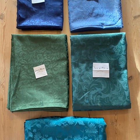 Pent brukte panel gardiner av merke Kirch. Disse er slitesterke og kan lett rulles sammen for oppbevaring.