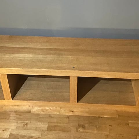 TV-benk laget av gamle marerialer fra en låve. B: 120, D: 30 og H: 40 cm. Denne er solgt men du kan bestille en liknende etter dine ønsker for utforming, størrelse og overflatebehandling.