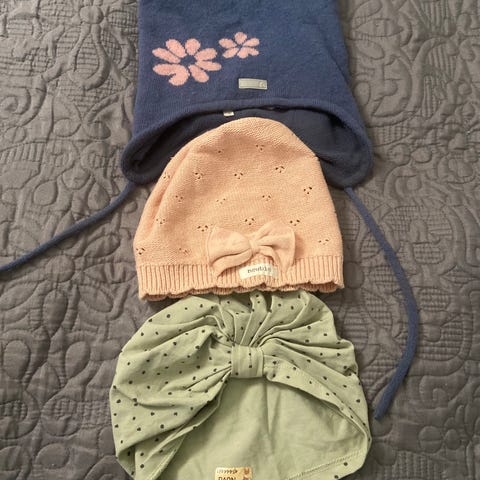Pent brukt, ingen hull. Lue nede er i str 2-6 måneder, den andre str 6-9 måneder. Kommer fra dyre- og røykfritt hjem. Hentes på Juvik, Askøy eller Bergen sentrum etter avtalt. Pris for begge.