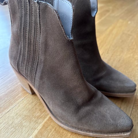 Brune skinnstøvletter fra Zara, str. 38. Made in Spain. Veldig sparsomt brukte. Høyde ca. 34 cm, høyde på hæl, ca. 7 cm.