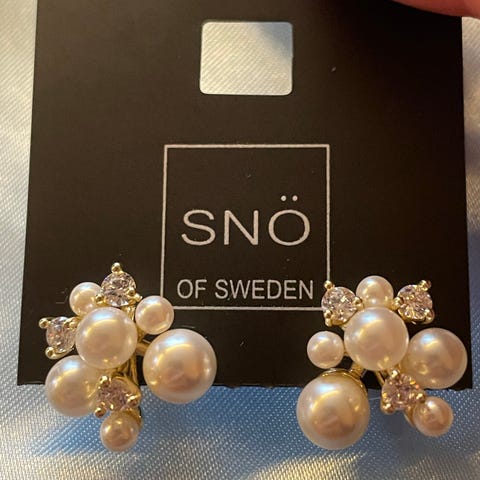 Vakker ørepynt belagt med 18 K gull doūble og med syntetisk perle. Ca cm mål: 3,5 lang / 2,5 bred. Se bilder og min profil for mye mer og forskjellig. Bruker posten Norge for frakt hvis du ikke henter.