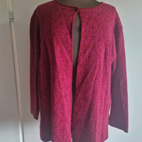 Kvalitetsprodukt. Materiale: 25% silke og 75% merinoull. Jakken fremstår som ny.