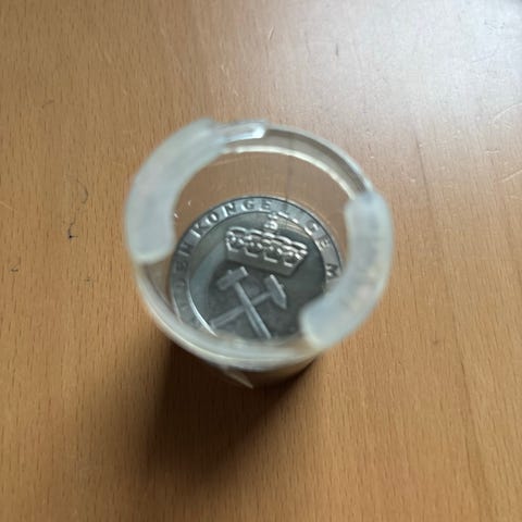 5 kr 350 år Hæren 1628 - 1978. Har 4 stk alle ser bra ut kr.50,- pr. stk. Kan sendes etter avtale.