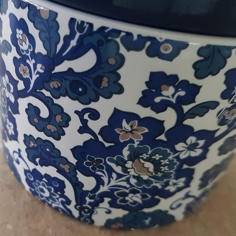Boks diameter 12,5 cm, høyde 16,5 cm