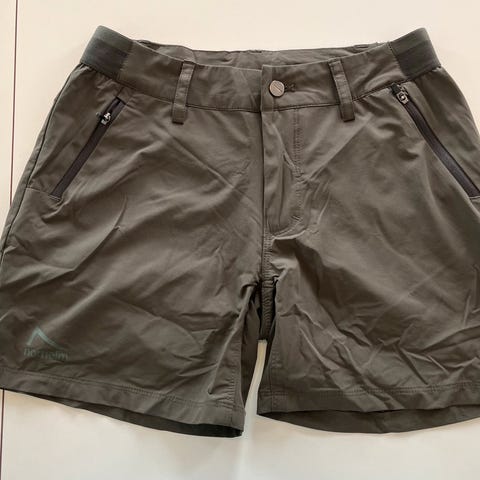 Pent brukt. Svært behagelig stoff med stretch. Lett og hurtigtørkende. Glidelåslomme. Justeringsmuligheter i livet. Super turshorts og fritidsshorts.
