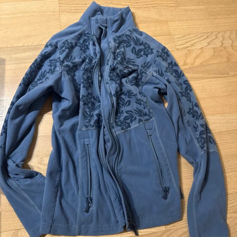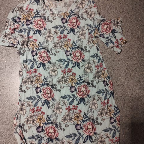 Bilde 4: Lyseblå genser med blomster og 3/4 arm fra Zavanna, str XL