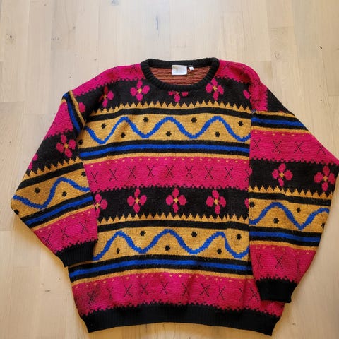 Unisex ull genser i str. L , nydelig farger kombinasjon, Stillig og kul samtidig. Veldig pen brukt.