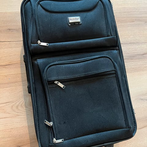 Gml stor brukt reisende koffert låsen er nok tvilsom ??