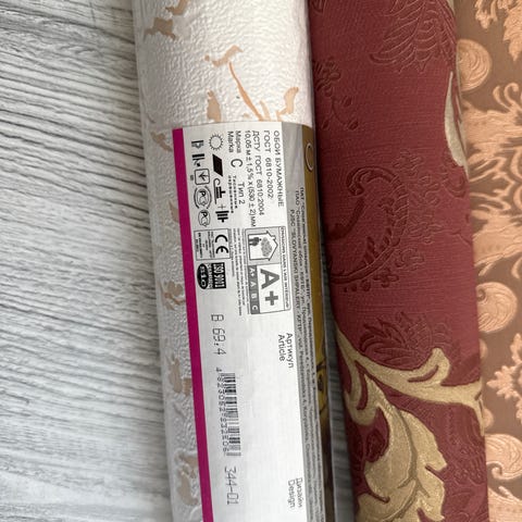 Kan være litt slitt på kanten, så passer kanskje best til hobby, tapetsering av møbler, hyller etc.