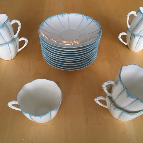 Ti kopper, elleve skåler. Trolig fra 50-60 tallet,