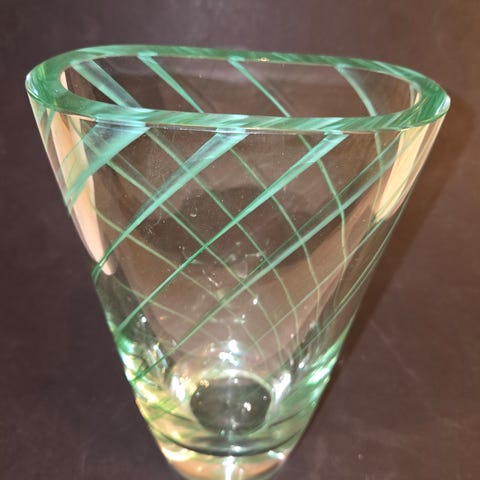 Vakker vase fra Waltherglass med pastellfarger i glasset. Høyde 20 cm