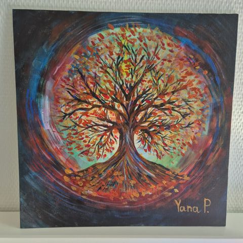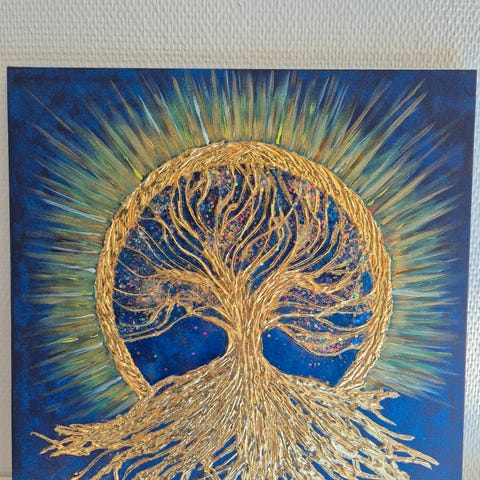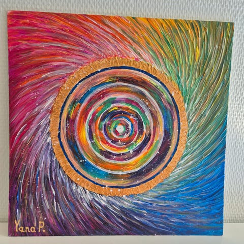 Akryl malling, 3D texture, Metal farger, gold leaf decoration, helt nye, 100x100cm pris fra 5500 tilbud pa 4800 na