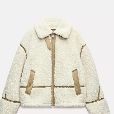 Lang jakke i kunstig semsket skinn fra Zara, brukt kun en gang, ser helt ny ut.