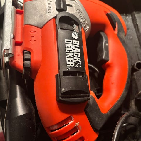 Ny stikksag i uåpnet pakke med batteri og lader selges.