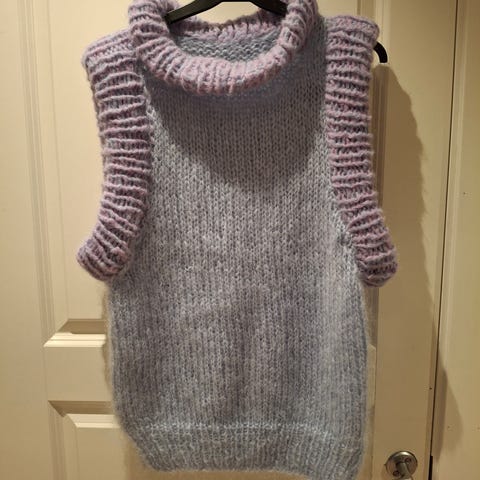 Hjemmestrikket vest i friske farger.