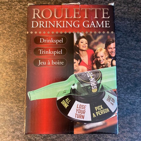 Spin the bottle drikkelekk. Kun åpnet og prøvd. Kan enten hentes i Haugesund eller sendes på kjøperens bekostning.