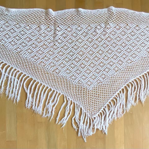 HĂ„ndlaget Trekantsjal, 100% ull đ Ubrukt eldre hĂ„ndarbeide đž