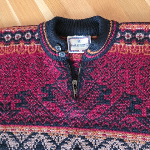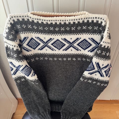 Den originale OL genseren fra Nagano 1998 i 100% ull selges. Håndstrikket i Dale Garn. Herrestr. XL Glidelås og knapp i hals. Overvidde 120 cm - hel lengde fra skulder 72 cm - ermelengde 53 cm