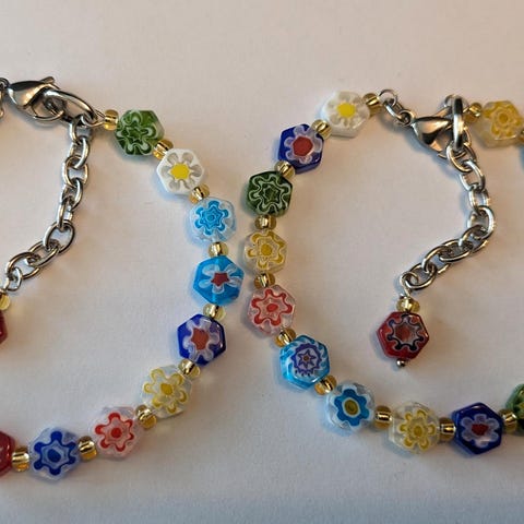 Armbånd med lys rosa krystall lignende glassperler, ca. 19 cm. langt,
