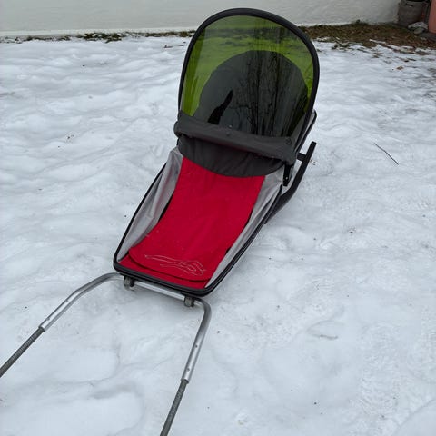 Fjellpulken barnepulk selges komplett (med rygg, vindskjerm, veltebøyler sele og drag) til kr 3500. Transporttrekk følger også med. Pent brukt!