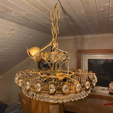 Taklampe utformet som en sol. Kjøpt ny for 1625 kr.