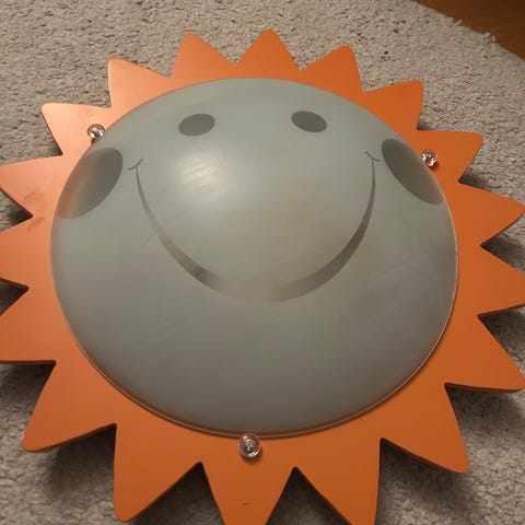 Taklampe utformet som en sol. Kjøpt ny for 1650 kr