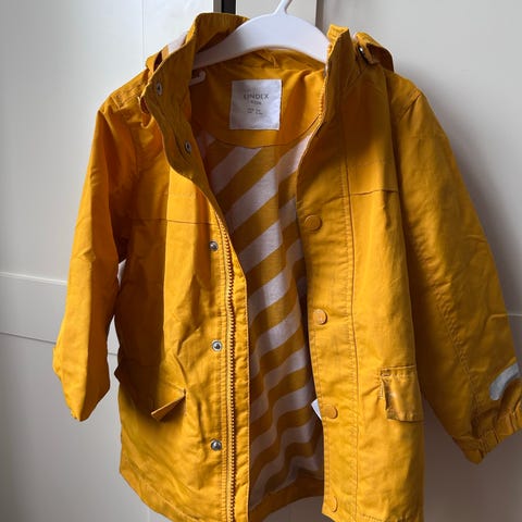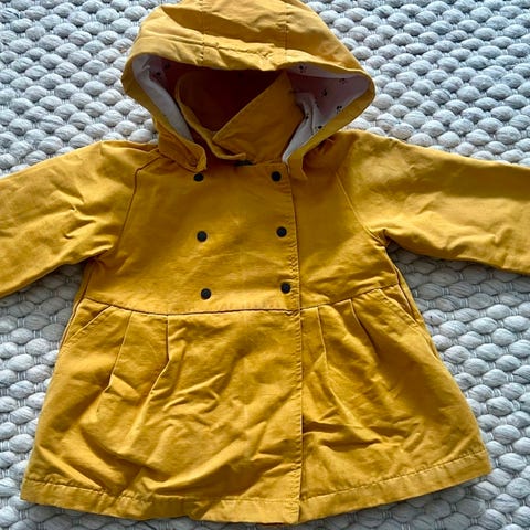 Nydelig gul vårjakke for en søt frøken. Prisen henger på enda(449kr) Selges hbo 300kr. Kan sendes mot porto.str 110