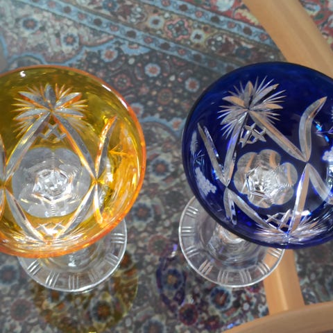 Likørsett kjøpt i Venezia 1969. Består av karaffel + 5 glass. Aldri brukt kun stått i skap.