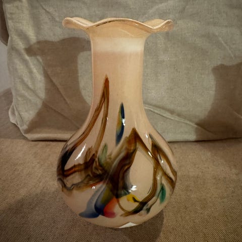 VTG Dalian Glass Company Snowflake Glass 7 3/4" vase Flared Scalloped opalin glass. Fra 1950 tallet.