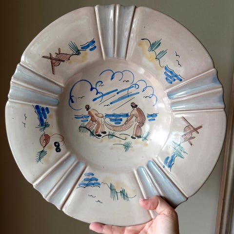 2 skåler/fat med blomstermotiv fra Graverens Keramikk. Sannsynlig produsert på 40-tallet.