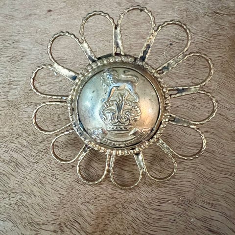 Kjempefin, stor ring i metall. Gullfarvet med svarte detaljer.